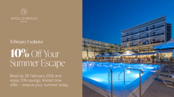 Enjoy 10% off your stay at Apollo Beach and secure your place by the sea in Faliraki, Rhodes. Whether you are travelling as a family, as a couple, or with friends, Apollo Beach offers the perfect balance of comfort, beachfront relaxation and warm hospitality.